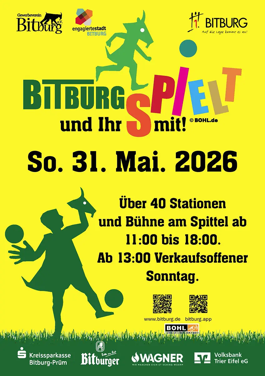 Gewerbeverein Bitburg e. V., engagierte Stadt Bitburg, Stadtverwaltung Bitburg, Kreissparkasse Bitburg-Prüm, Bitburger Braugruppe GmbH, WAGNER GmbH, BOHL Design & Kommunikation und die Volksbank Trier Eifel eG